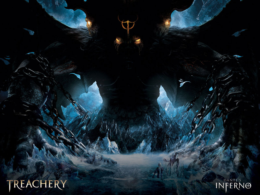 - Treachery in its own right is wasteful to Life itself. It is more serious than the other previous sins due to the sinners' assumption of being able to claim absolute authority over any other living thing including someone that was chosen by God; raising oneself up at the expensive of others. Satan acts as the extreme example of this as he thought that he could rule better than God, leading to his betrayal and fall. As such, the Traitors are committing a form of hubris against God, the worst of all and are placed among the lowest circles (Violence, Fraud) which shared in this form of power-assumption.